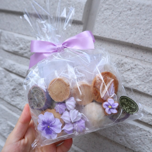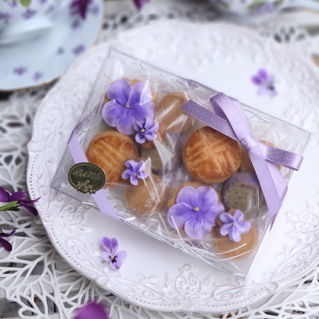 当店をご覧くださりありがとうございます。 心から感謝と御礼申し上げます。 心踊るような、素敵なティータイムになるよう 見た目も味もこだわり 丹念こめてお作りしております。 ・*.。❁・*.。❁・*.。❁・*.。❁・*.。❁・*.。❁ すみれがたくさん散りばめられた、 可愛いプチクッキーセット。 お味もほんのりスミレ味♡ サブレバニラ、サブレラベンダーアールグレイ、ガレットブルトンヌ入り プレゼントはもちろん、ご自身のご褒美タイムにも… 【特定原材料】小麦 乳 卵 アーモンド 【賞味期限】 製造日より50日 【サイズ】クリアケース155mm×110mm ✿できる限り、割れづらい状態で詰め合わせ、梱包致しますが、万が一配送による欠けや、割れ等の可能性もあります。 ご了承頂ける方のみお願い致します。 ✿領収書が必要な方はメッセージにてお伝えくださいませ。 厳選した香り高いバター、フランス産のサクサクとした小麦粉。そこにふんわりと心地良い余韻を残す、香り高いハーブ。至高の一口をお楽しみ頂けます。 パティシエが自信を持ってお届け致しますので、到着までどうぞ楽しみにお待ちくださいませ。 お急ぎの方は翌日発送対応可能な場合がございますので 何日までにご入用かお電話ください。 またご不明点等ございましたらお気軽にお問い合わせください。 TEL 078-862-6532
