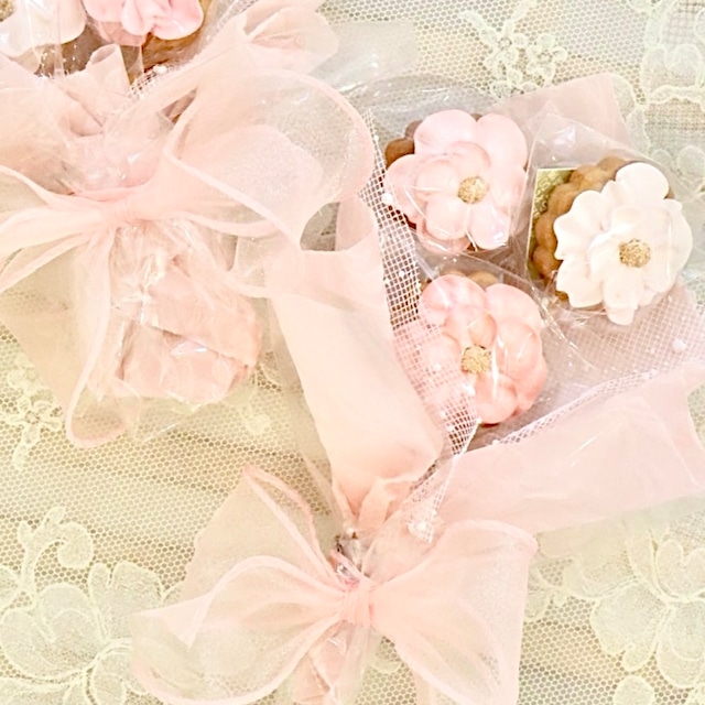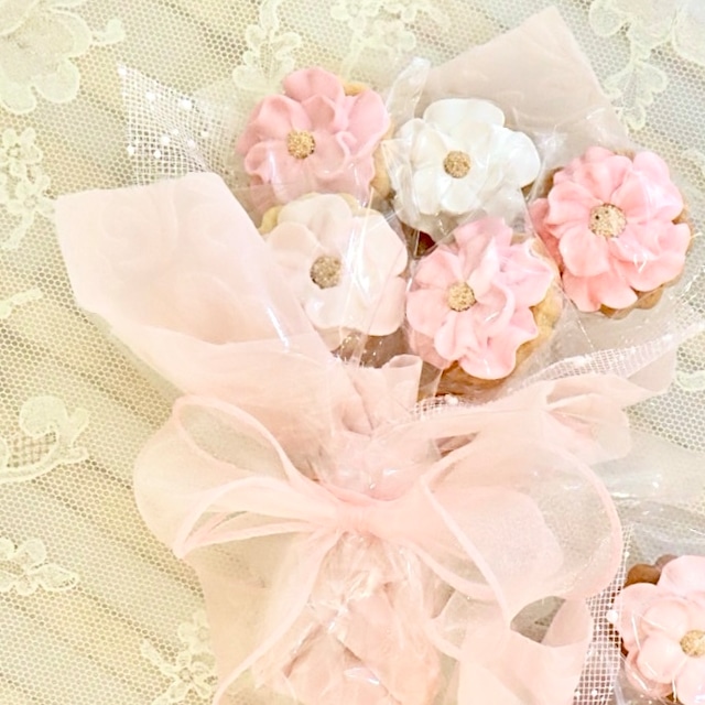 お花のクッキー ✲ฺ お色味は画像の白ピンク系の中からランダムでお届け。 ✾✿❀❁ その他のカラーは特注にてお作りいたします。 別ページにカラー変更の商品があります。 そちらを一緒にカートに入れた上で、備考欄にカラーを記入くださいませ。 ✾✿❀❁ お急ぎの方は翌日発送対応可能な場合がございますので 何日までにご入用かお電話ください。 (備考欄は発送時に確認しますため、時間がかかる場合がございます) またご不明点等ございましたらお気軽にお問い合わせください。 TEL 078-862-6532(水曜定休)